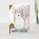 Bunny Rabbit Happy Easter Floral Gold Pink Blue Holiday Card