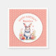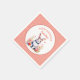 A sweet little bunny rabbit surrounded by pink and coral flowers watercolor illustration personalised birthday party paper napkins for a little girl.