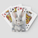 Playing cards of a cute, fluffy grey rabbit with big ears and an adorable expression is surrounded by delicate white flowers. The soft, pastel colours create a gentle and whimsical atmosphere.