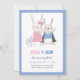 Cute blue Bunny Rabbit Birthday Invitation for your twins featuring adorable hand drawn boy and girl bunnies.