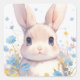 Bunny Rabbit with Blue Eyes and Spring Wildflowers Square Sticker