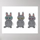 Bunny Rabbits Wearing Glasses Gray Poster