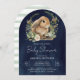 Bunny Sage Green Floral Navy Blue Arch Baby Shower Invitation