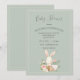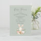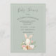Bunny Watercolor Floral Green Girl Baby Shower Invitation