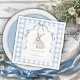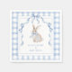 Celebrate the arrival of a sweet baby boy with our this sweet baby shower napkin featuring a delicate hand-drawn vintage watercolor bunny adorned with a soft blue ribbon. The classic blue and white chequered background adds a nostalgic, farmhouse-inspired charm, making this design both timeless and heartwarming.