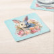 Bunny with a Garland of Roses Cute Square Paper Coaster