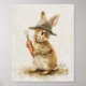 This delightful artwork features an adorable bunny dressed in a charming hat, holding a freshly picked carrot. The rustic, watercolor style enhances the whimsical nature of the piece, making it perfect for children's rooms, nurseries, or anyone who loves cute animal art. The soft, muted background adds a touch of vintage charm, allowing the vibrant bunny and carrot to stand out beautifully.
