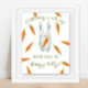 Gender neutral baby shower invitations. Featuring the saying 'A LITTLE BUNNY IS ON THE WAY!', an illustration of a watercolor bunny (rabbit) with carrot in paws, and many orange colour carrots. Matching items available.