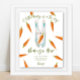 Gender neutral baby shower invitations. Featuring the saying 'A LITTLE BUNNY IS ON THE WAY!', an illustration of a watercolor bunny (rabbit) with carrot in paws, and many orange colour carrots. Matching items available.