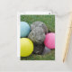 Bunny with pink blue yellow egg postcard