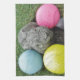 Bunny with pink blue yellow egg tea towel
