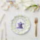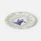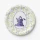 Adorable bunnies in an embrace over a tiny floral spring background in lavender and green. A cute party plate for spring, Easter or most any time of year. Matching napkins are available in this design. Bunny graphic courtesy of Vecteezy.com.