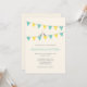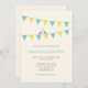 A modern wedding invitation featuring love birds sitting atop bunting banners. Please ask about custom colours!