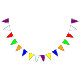The color scheme for this triangular (flags) bunting is as follows - single colored triangles from left to right: Purple - Mint Cream - Red - Lime - Orange - Blue - Yellow - Mint Cream - Purple - Yellow - Blue - Orange - Lime - Red - Mint Cream - Purple.