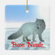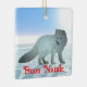 White on white. A digital painting of an Arctic Fox, Vulpes lagopus, on the polar ice. The sun hangs low in the bright blue arctic sky. Do not stare at the sun as it can harm your eyes. Italian text reading, "Buon Natale" appears in red. The Arctic Fox is comfortable in deep cold; it does not begin to shiver until temperatures drop to about −70 °C (−94 °F) due to its dense, multi-layered fur. Other adaptations to a frigid climate include fur on the soles of its feet, short ears, and a short muzzle. Arctic foxes live in burrows, in a blizzard they may tunnel into the snow to create shelter. The coat of the Arctic fox, sometimes blue-grey, is very effective winter camouflage. The natural hues allow the animal to blend into the environment. During the short warm season its coat changes to brown or grey, again acting as camouflage in tundra rocks and plants. During the winter, when prey is scarce, the foxes follow hunting Polar Bears on the ice pack feeding on scraps. During the summer the eat rodents, birds, eggs, and even fish. They will also feed on berries and seaweed. Arctic Foxes have extremely keen hearing, aided by their wide, front-facing ears, which allow them to locate the precise position of their prey beneath the snow. If it hears something moving under the snow it leaps into the air and pounces, punching through the snow to catch its prey. The range of the Arctic Foxes is circumpolar; they can be found throughout the far north. The only land mammal native to Iceland, it arrived by walking oversea ice at the end of the last ice age.