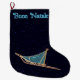 A dog sled with a teal sled bag superimposed on a starry background. Italian text reading "Buon Natale" appears in glowing blue and white. You may personalise the stocking by adding a bit of text on the sled bag.