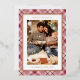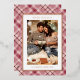 Buon Natale Pink Plaid Tartan Photo Foil Holiday Card Foil Stamped Christmas Cards features a simple design with your favourite photo with the foil text overlay "Buon Natale" in modern calligraphy script typography with a pink plaid border. Personalised your names or custom text below and your custom message on the reverse. Perfect for family and friends to celebrate Christmas and the holidays. Designed by ©2025 Evco Studio www.zazzle.com/store/evcostudio