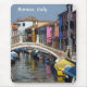 Burano, near Venice, Italy, is an island of pastel houses and lace. This photo leaves out the lace, but it shows the pink, blue, red, beige and white houses, all crowded together and reflected in a narrow canal. A footbridge arches over the canal, and small boats, as colourful as the houses, line both sides of the water. In the right foreground a yellow rowboat with outboard motor is tied, end to nose with a blue one. All reflect their own colours into the water to compete with those of the houses. Against the light blue sky at the top of the image is the white lettering, "Burano, Italy." Copyright Gail Storrs 2006.