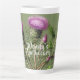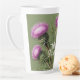 A tall latte mug for the herbalist. Pretty purple and green burdock wraps around the cup over a sage green background. Add any wording in off-white. Sample is "Wendy's Apothecary". Makes a nice gift for a naturopath, botanist, herbologist and gardener.