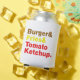 Funny Foodie Fast Food Humour ~ Burger and Fries and Tomato Ketchup.