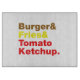 Burger & Fries & Tomato Ketchup. Cutting Board
