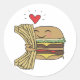 Cute cartoon of a cheeseburger hugging a bunch of fries. You can change the background to which ever colour you like by customising the product and choose "Edit" and then background colour.