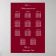 Burgundy 11 Table Wedding Seating Chart Poster, please personalise the names of the couple and the names of the guests along with any of the other text that you may wish to personalise. A stylish seating chart poster featuring elegant white text on a lovely rich bold burgundy background.