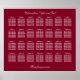 Burgundy 28 Table Wedding Seating Chart Poster, please personalise the names of the couple and the names of the guests along with any of the other text that you may wish to personalise. A stylish seating chart poster featuring elegant white text on a lovely rich bold burgundy background.