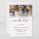 Create a beautiful burgundy wedding photo save the date card featuring a modern script font. Easily personalise this photo save the date with your wedding details and images.