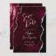 Burgundy Agate Silver Script Wedding Save the Date Invitation