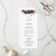 Elegant floral wedding program with burgundy and navy blue watercolor arrangement with (faux) gold foliage accents and eucalyptus.