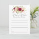 Blush pink and burgundy (marsala) floral baby shower advice for mum-to-be cards.