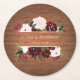 Burgundy and Blush Floral Rustic Wedding Round Paper Coaster