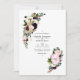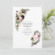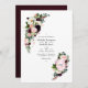 Wedding invitation featuring a pink monogrammed diamond decorated with blush pink and deep burgundy plum florals and geometric gems.
