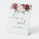 Burgundy and Blush Pink Floral Love is Sweet Pedestal Sign