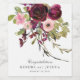 Celebrate your wedding day with personalise wine labels that match your wedding invitation suite. This design features a bouquet of burgundy and blush pink roses and mixed flowers with trailing greenery and vines. A text template is included to personalise with the bride and groom's names and wedding date. This wine label is also a thoughtful choice for engagement parties or other events celebrating the bride and groom.