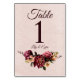 Lush garden blooms, hand-arranged in a palette of heirloom rose, burgundy wine, and candlelit peach, frame each number like a still life. The typography? Classic. Elevated. Effortless. The kind of detail that makes your wedding look like it belongs on the pages of a legacy editorial—because it does.