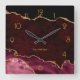 Burgundy and Gold Agate Personalised Square Wall Clock