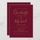 Burgundy and Gold All In One Chic Script Wedding Invitation