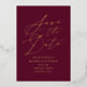 Announce your upcoming wedding in style with our Minimalist Calligraphy photo save the dates. The elegant save the date cards feature the words "Save the Date" in a gold foil script with your names, wedding date, & location featured below on a burgundy background. The back of the save the dates features your favourite engagement photo.