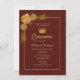 The design shows a classic unique elegant quinceanera invitation in gold typography and calligraphy with burgundy background. The design is extremely chic. Click on " edit using design tool" to adjust the placements of the texts.