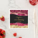 This elegant and glamourous birthday party napkin features burgundy red and gold faux glitter glam tears on a black background. The text combines handwritten script and modern sans serif fonts for a classy and sophisticated look.