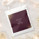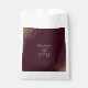 Send your guests home with a touch of luxury in these elegant wedding favour bags featuring a sophisticated deep burgundy background. The design is accented with a stunning spray of gold glitter that cascades from the corners, creating a high-quality and celebratory feel. Your names and wedding date are beautifully displayed in a clean, white serif font, ensuring a polished and cohesive look for your reception. These personalised treat bags offer a chic, modern aesthetic that perfectly complements a formal or romantic wedding theme. These favours provide a heartfelt way to thank your guests for being part of your special day, leaving a lasting impression of your refined style.