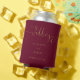 Burgundy And Gold Heart Script Wedding Can Cooler