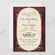 This romantic wedding invitation features a elegant mediaeval theme. A cream coloured marble background contains the wedding information, which has an antique style gold frame. The border is a rich burgundy foil design.
