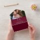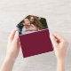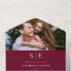 This chic minimalist all-in-one wedding invitation can be personalised with your special photo, monogram initials and wedding day information on a burgundy background. The invitation includes a perforated RSVP card with your wedding website QR code and details. Designed by Thisisnotme©