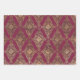 Vintage Paris burgundy and gold pattern wrapping paper in three different styles.