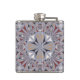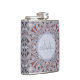 Ornate burgundy and grey kaleidoscopic pattern on personalised hip flask.
