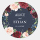 Burgundy and Navy Blue Floral Wreath Wedding Classic Round Sticker