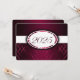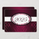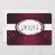 Burgundy and white graduation party invitation with light and dark burgundy stripes and a white ribbon going across showing the year of graduation. The back of the card is burgundy with white font for people to fill in the graduation party invitations.